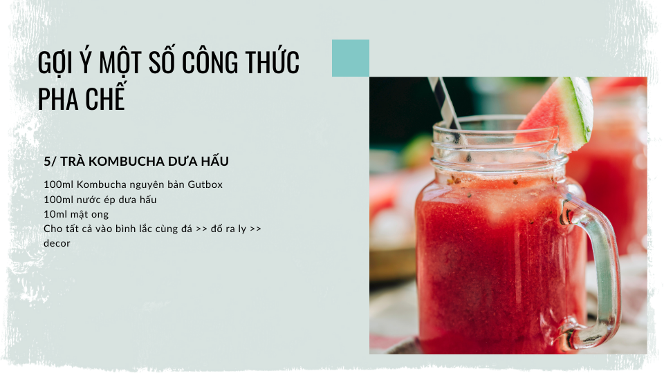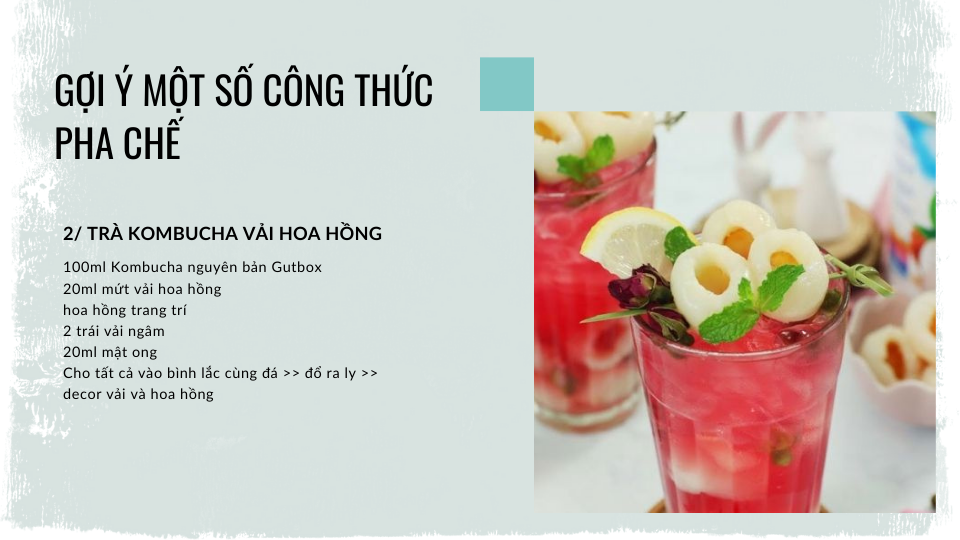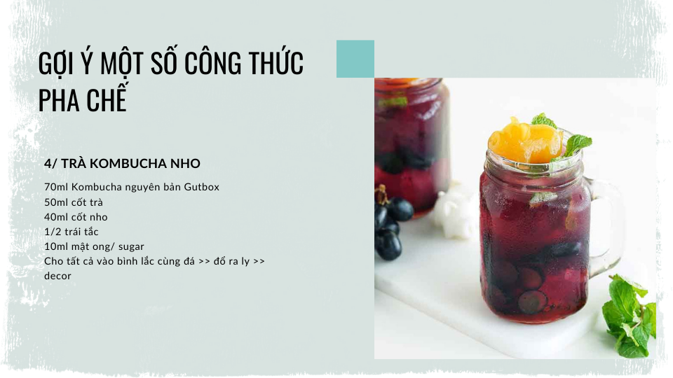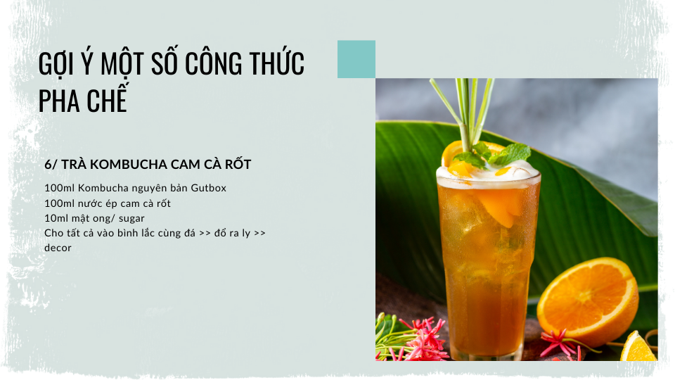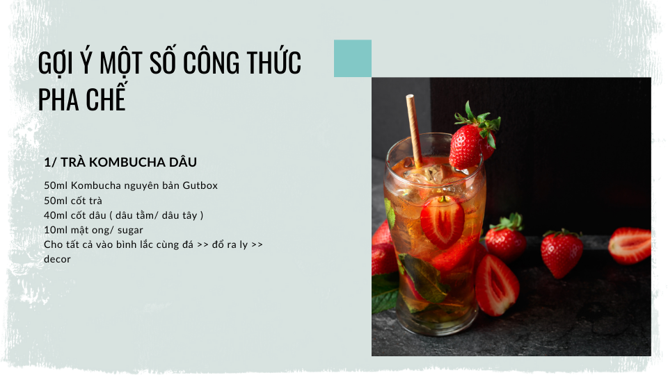 Sau đây là một số công thức pha chế cơ bản với trà Kombucha mà quán bạn có thể áp dụng để đưa vào menu trong mùa nắng nóng này